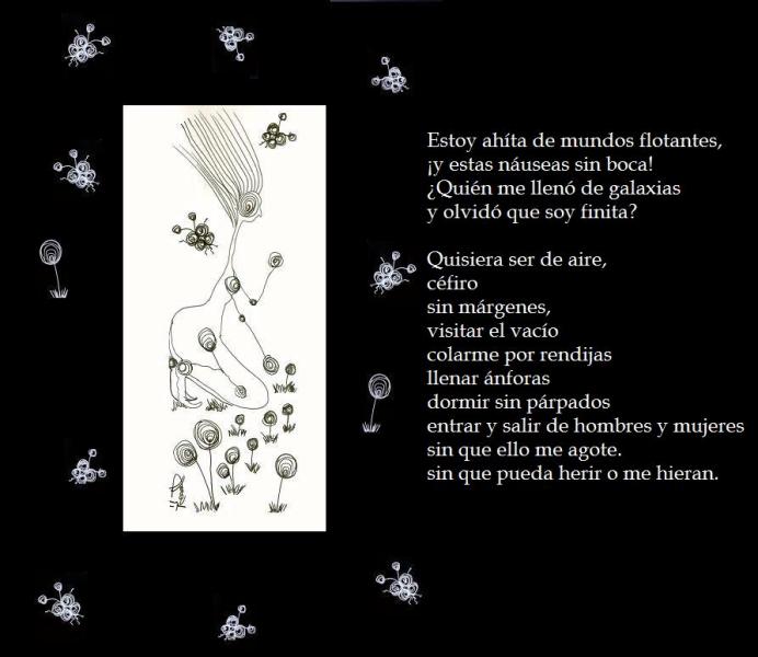 Título del escrito: Ahíta de mundos © ® Título del dibujo: Mundos en flor (Tinta sobre papel) © ® Dibujo y poema de Isabela Méndez ®