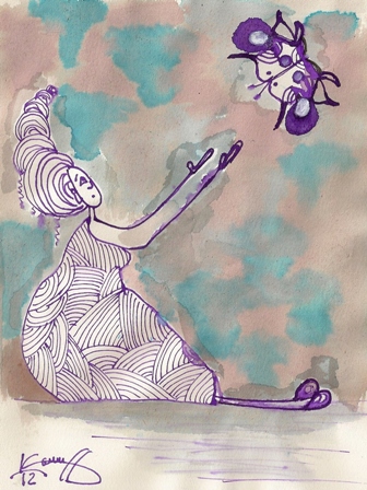 Título del dibujo: Mujer ovillo (Técnica mixta) ©