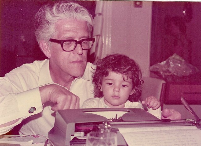 Al entrar en su estudio, sentía que estaba en un territorio un tanto sagrado, con el olor a madera, el pisapapeles, las plumas, las hojas con membrete, las enciclopedias y diccionarios, los discos…Mi abuelo, amorosamente extraía de una cajonera una mesita que quedaba a mi altura, me daba lápiz y papel para que yo también pudiera escribir. Me sentía un poco adulta, importante, querida y estimulada por aquel hombre con cabellera de nubes.