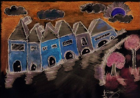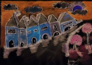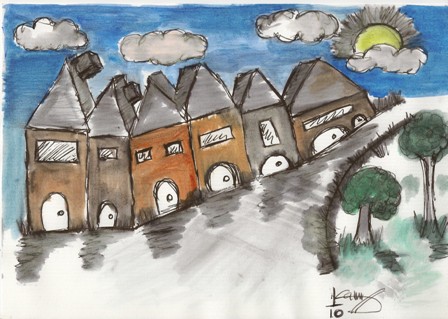 Título del dibujo: Pueblito © ® (tinta y acuarela)