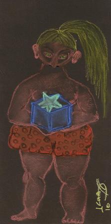 Título del dibujo: Desempolvando estrellas © ® (Pastel sobre papel)